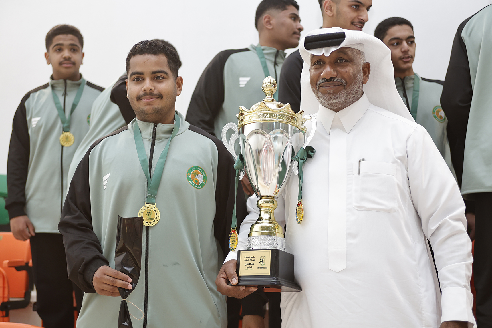 وشهد الحفل حضور رئيس النادي الأستاذ مبارك المعيويد، ونائبه الأستاذ رائد المعيويد، والرئيس التنفيذي الأستاذ عيسى الحصار، إلى جانب أعضاء لجنة كرة اليد يتقدمهم رئيس اللجنة الكابتن مرزوق المعيويد ونائبه الكابتن عيادة العيادة، وبحضور أولياء أمور اللاعبين وعدد من محبي اللعبة.