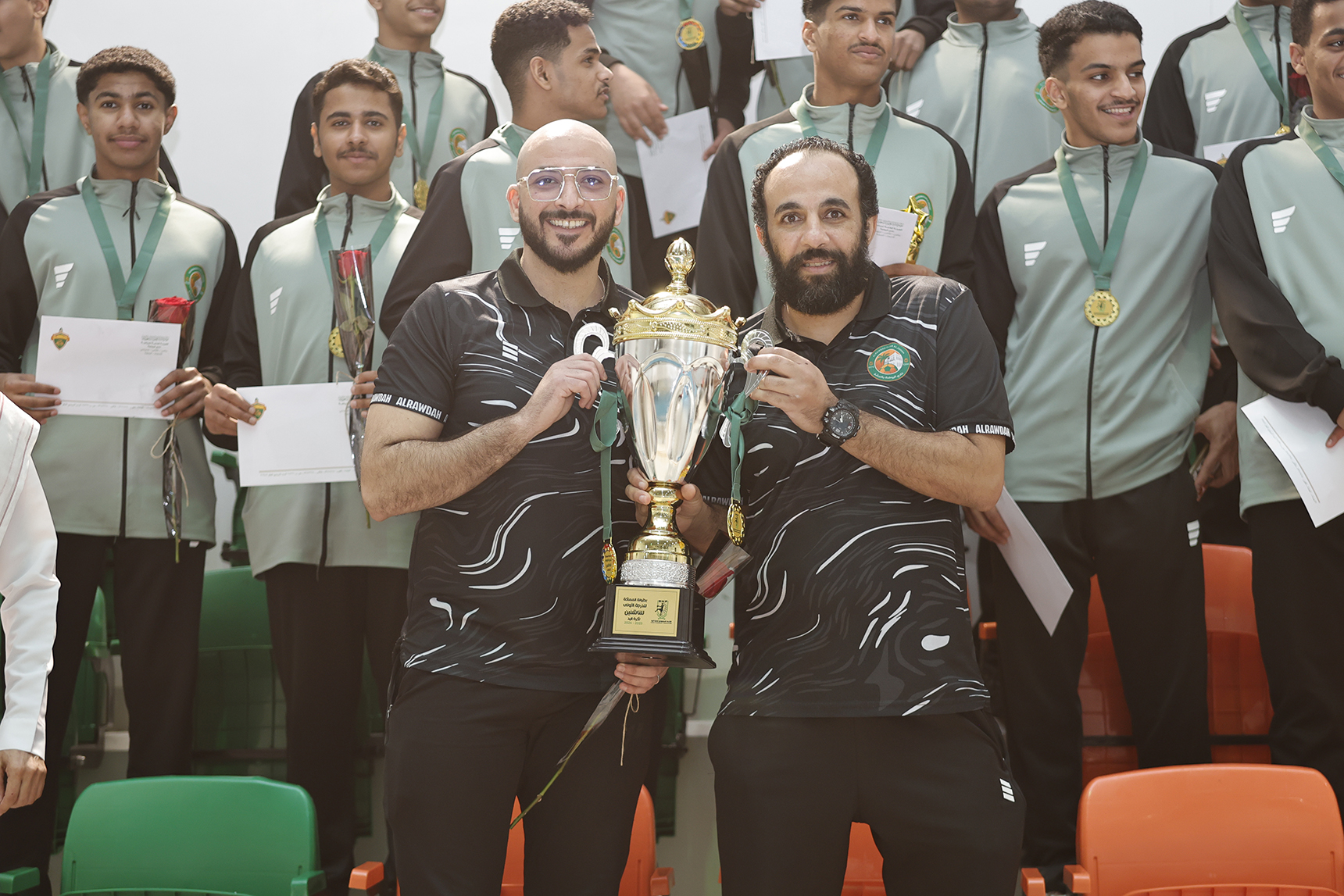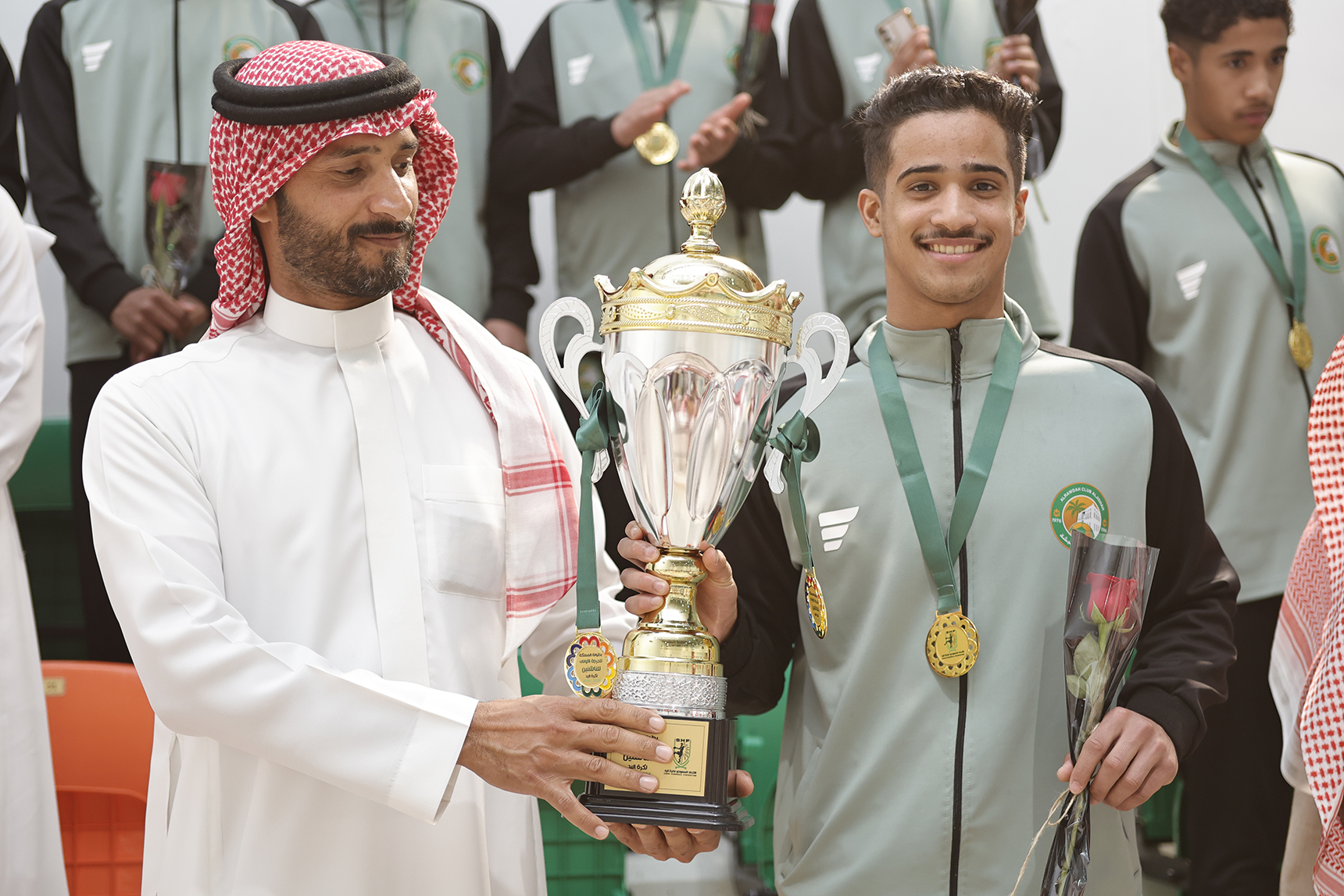 وفي ختام الحفل، تم التقاط الصور التذكارية وسط أجواء من الفرح والفخر، عكست حجم الإنجاز الذي تحقق، ليؤكد نادي الروضة من جديد حضوره القوي في ساحة كرة اليد السعودية.